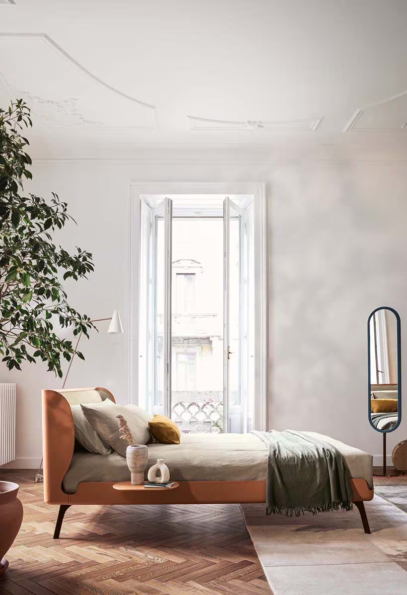 GABRI (объятие) - это объятие: этим все сказано! Поэтому не имеет значения, является ли GABRI классической или современной кроватью. Вероятно, это и то, и другое: обволакивающие и чувственные линии изголовья и компактный размер превращают ее в идеальную кровать для больших и маленьких комнат. Кожаная обивка, обработанная до мельчайших деталей, делает ее похожей на костюм портного, а геометрические линии каркаса кровати изгибаются в виде группы канавок, предназначенных для удобства рук и легкого расстилания простыней и одеял.