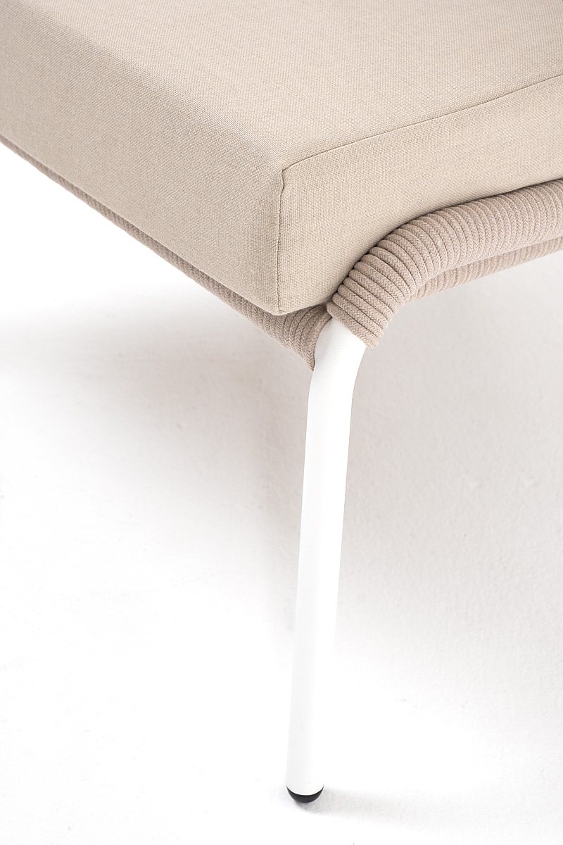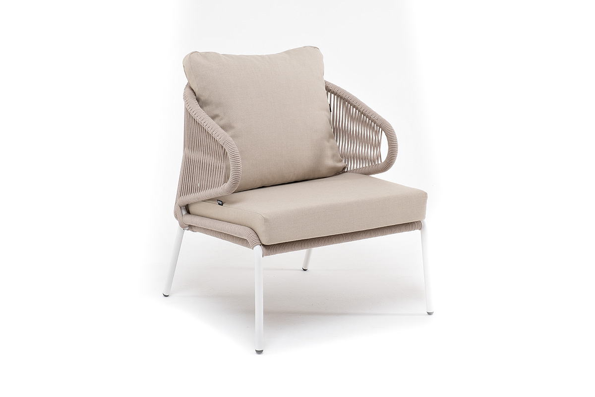 "Милан" кресло плетеное из роупа, каркас алюминий белый муар, роуп бежевый круглый, ткань бежевая 052