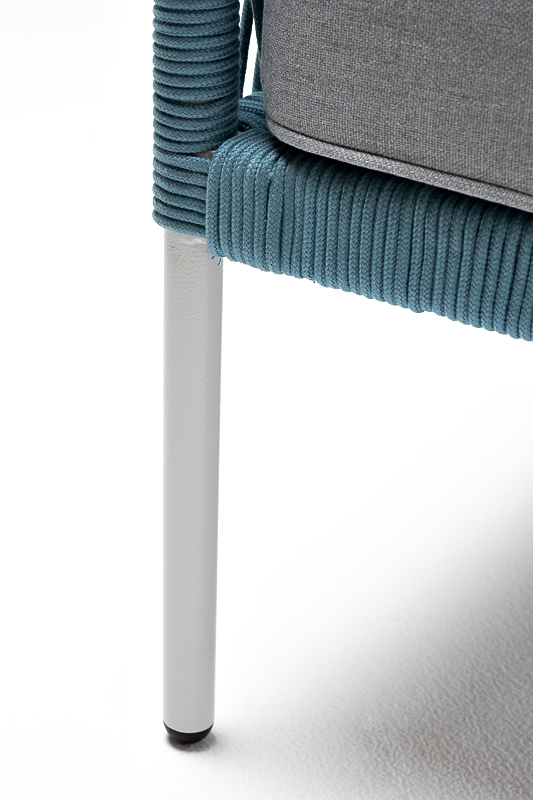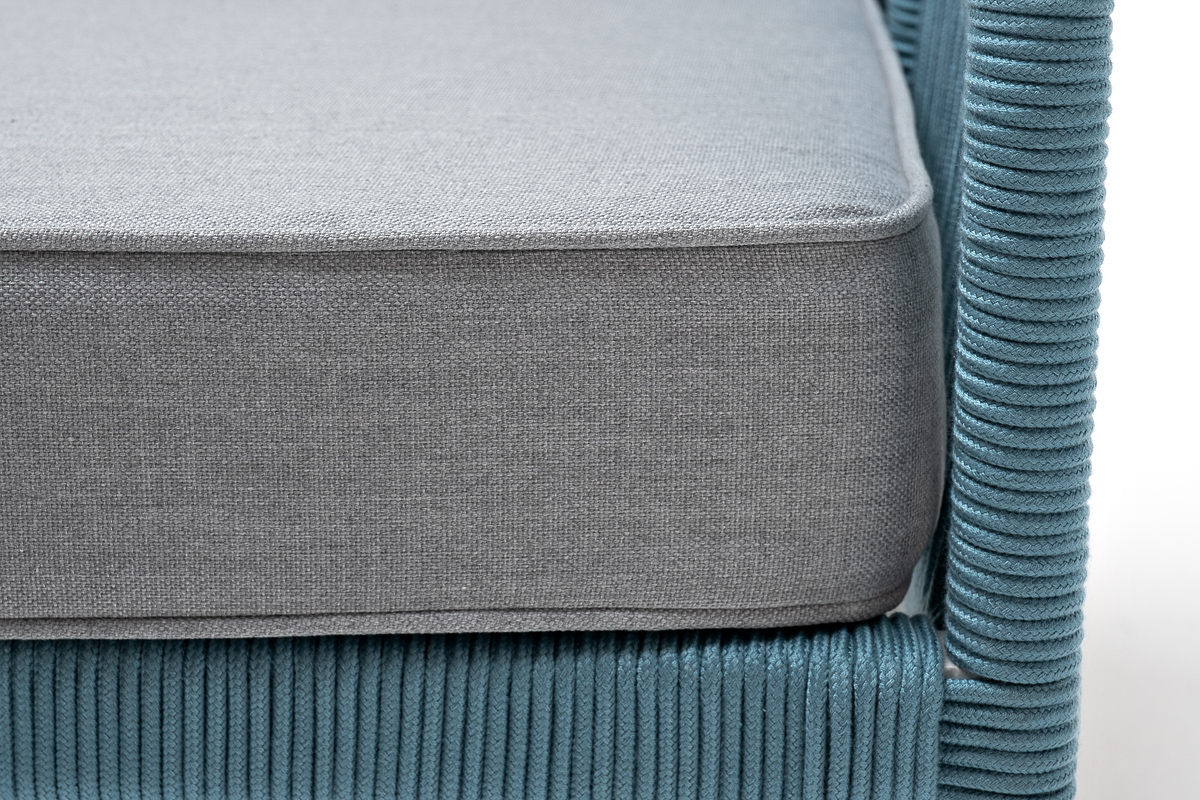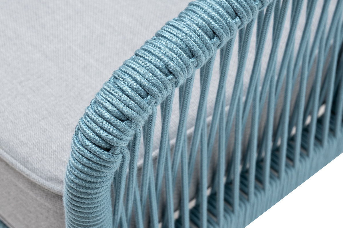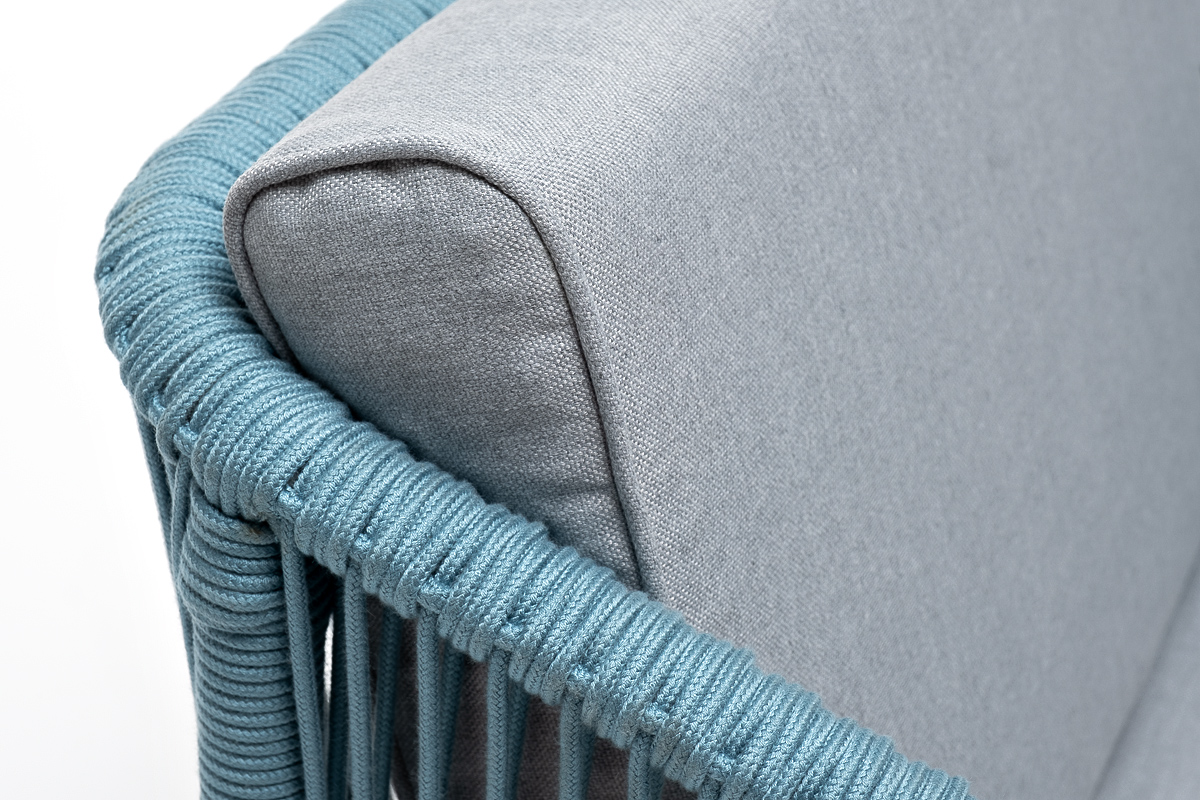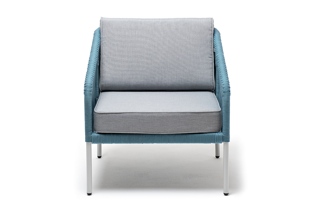 "Канны" кресло плетеное из роупа, каркас алюминий светло-серый (RAL7035) муар, роуп бирюзовый круглый, ткань светло-серая