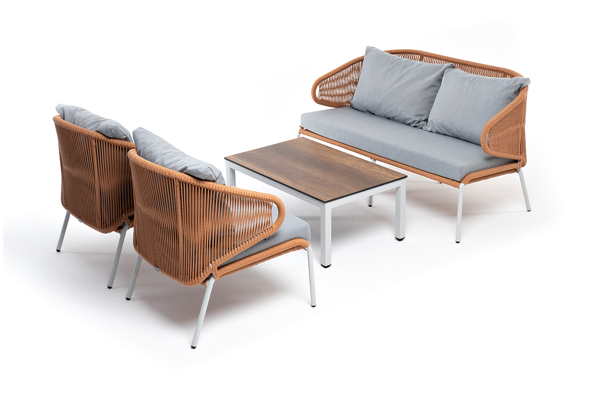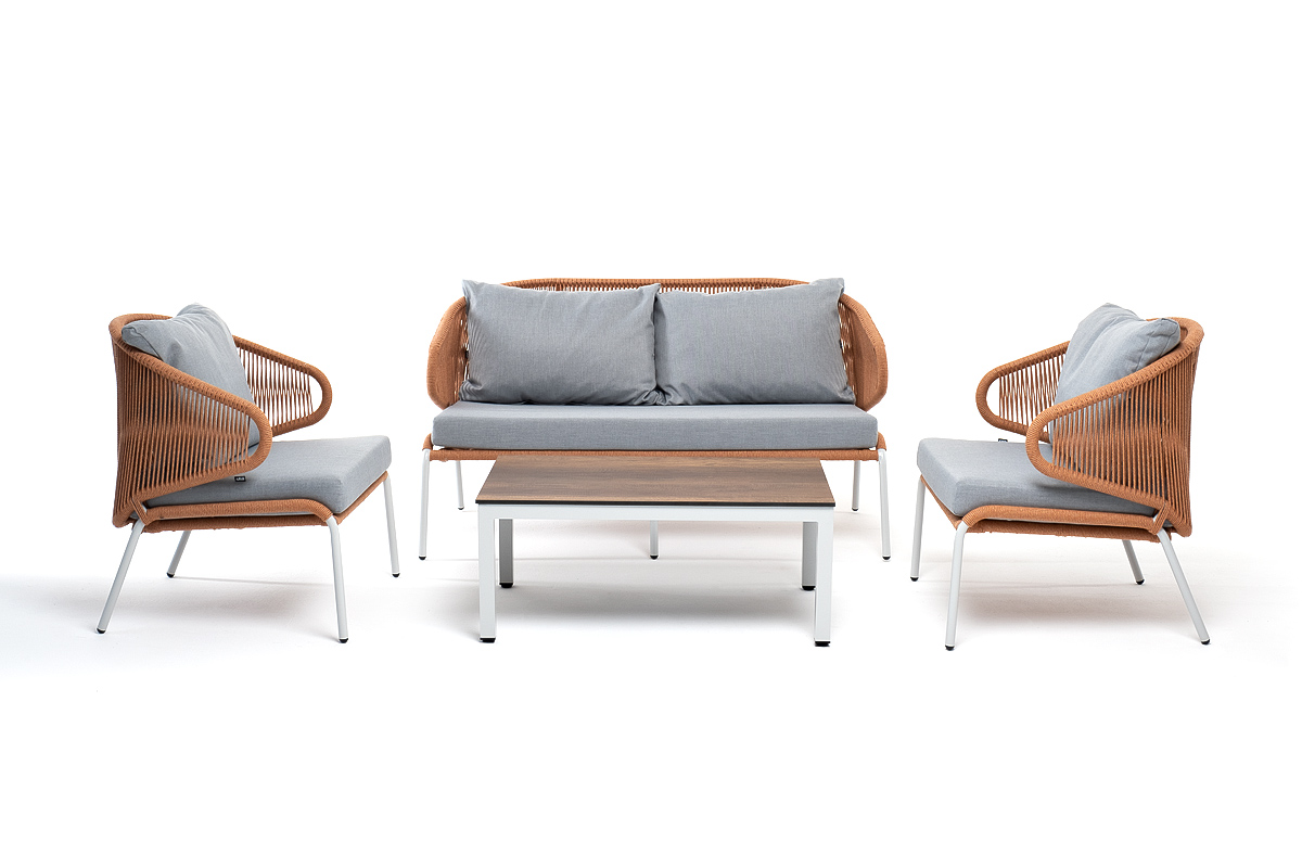 "Милан" лаунж-зона 4-местная плетеная из роупа (веревки), каркас алюминиевый светло-серый, роуп оранжевый меланж