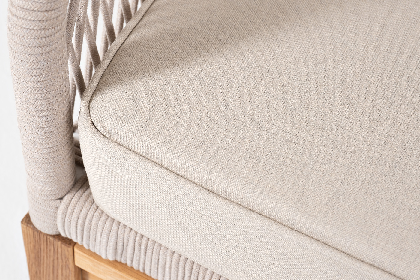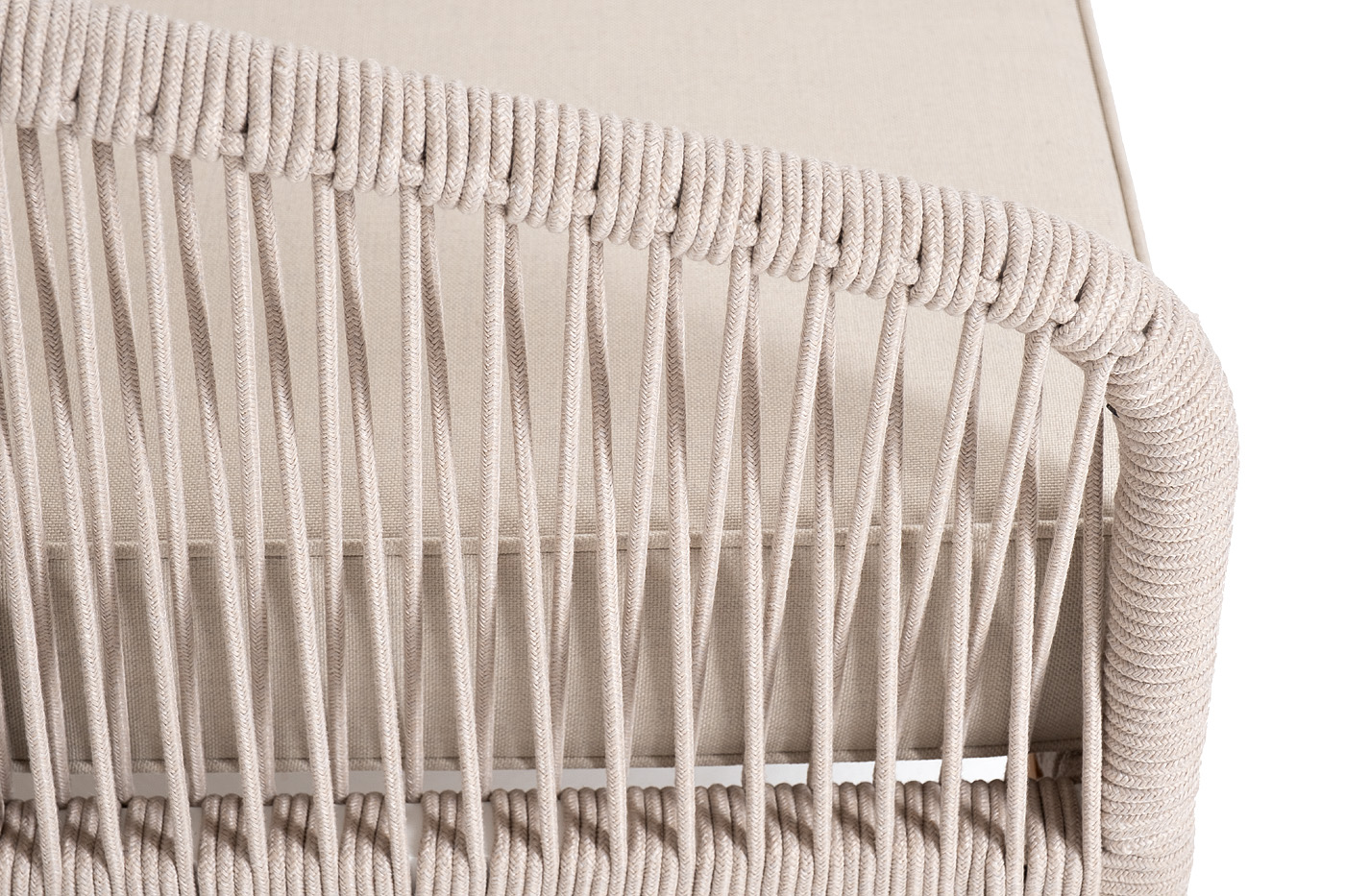 "Канны" правый модуль плетеный из роупа, основание дуб, роуп бежевый круглый, ткань бежевая 052