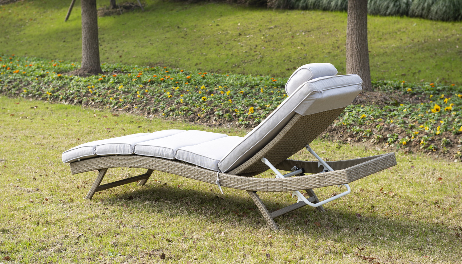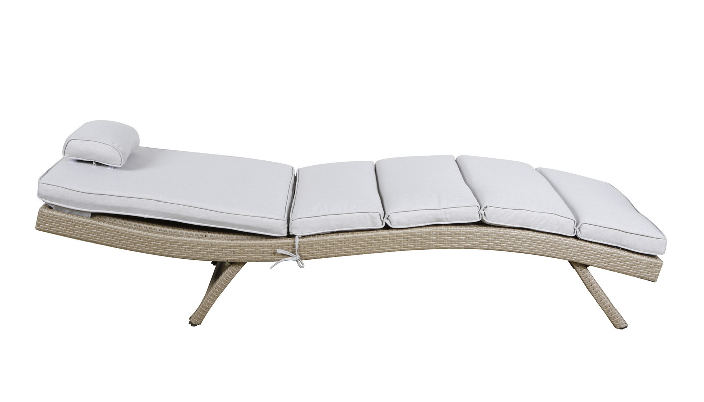 В комплекте прилагается матрас светло-серого цвета из водостойкой ткани.Мебель натуральных расцветок гармонично вписывается на пляже, в саду, на террасе.