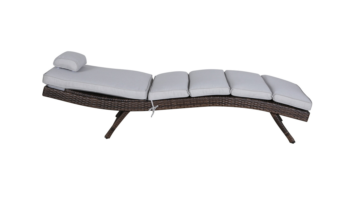 Плетение для лежака выполнено вручную. Повышенной прочности придает ему каркас, сделанный из алюминия. Искусственный ротанг не требует специального ухода.